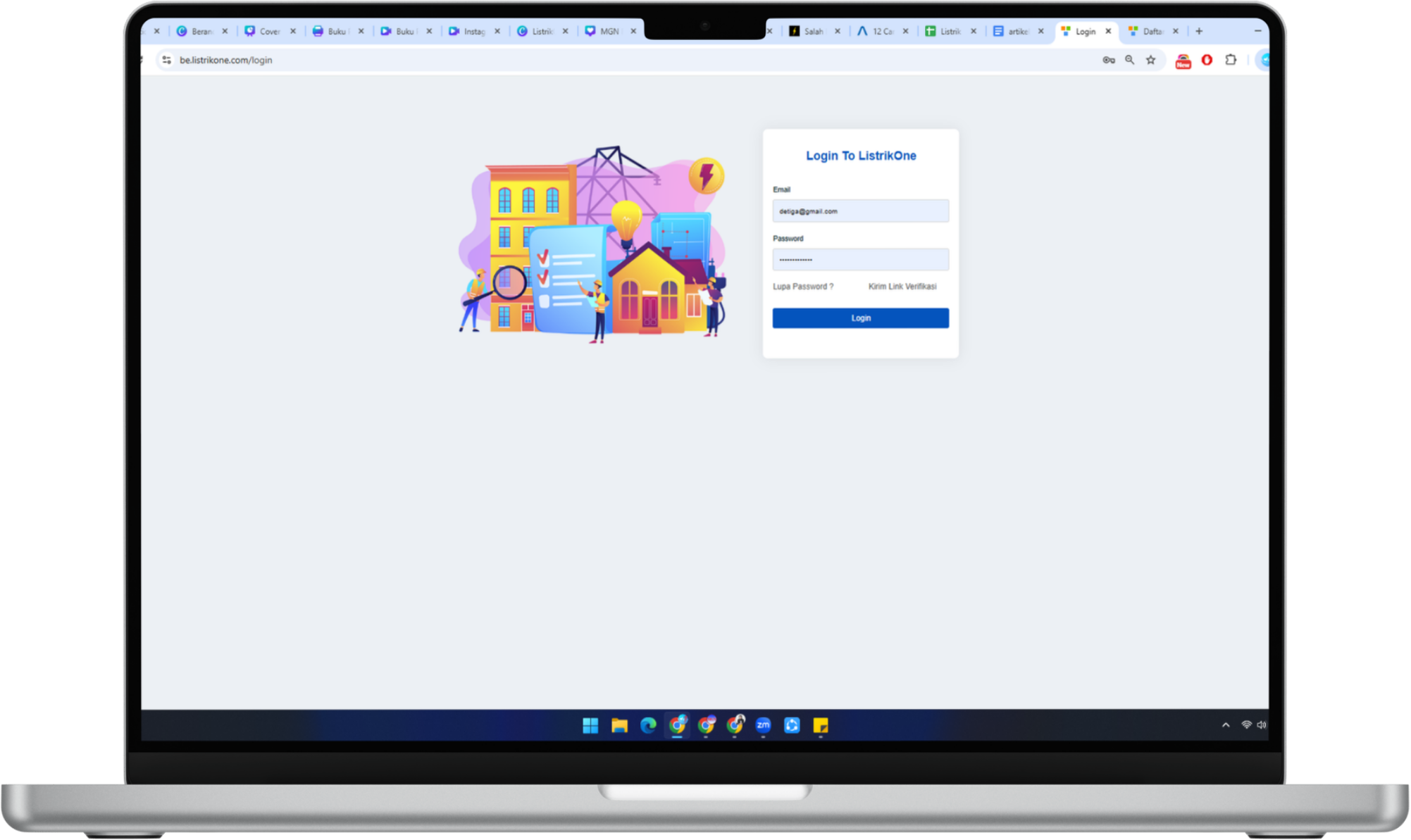 4. Setelah melakukan pendaftaran, kalian bisa login ke halaman dashboard Mitra ListrikOne melalui website Login Mitra. Lalu, masukkan email dan password yang sudah didaftarkan sebelumnya.